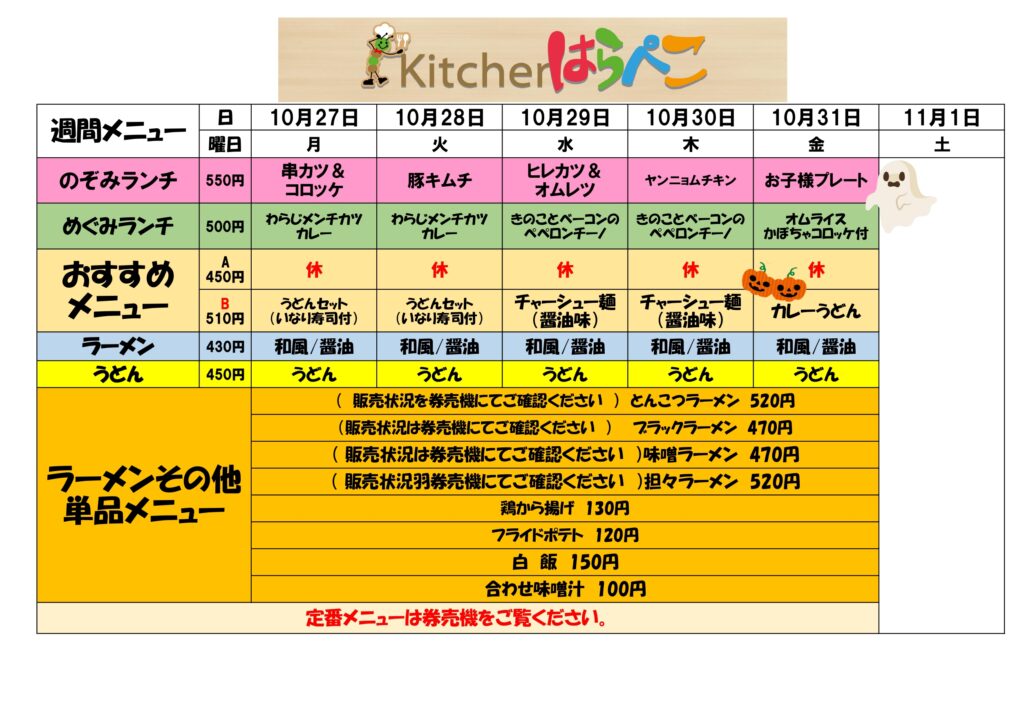 学食週間メニュー 10/27~31