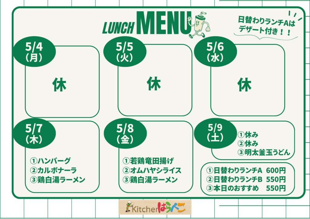 学食週間メニュー 5/4~9